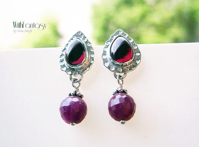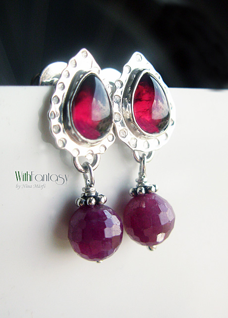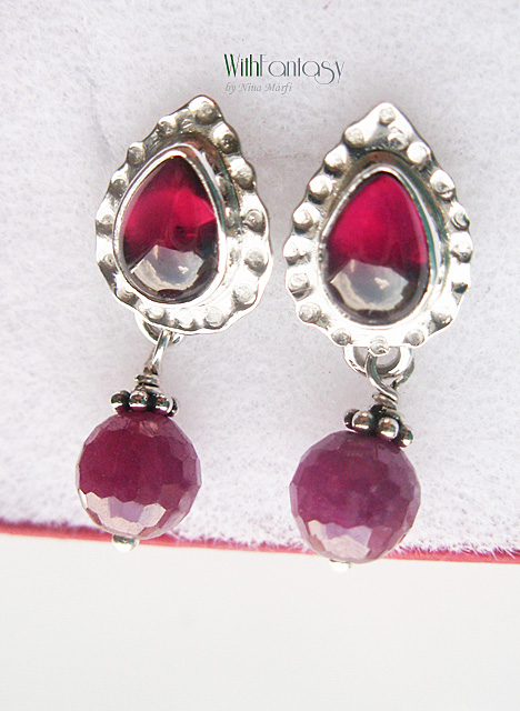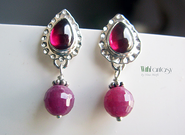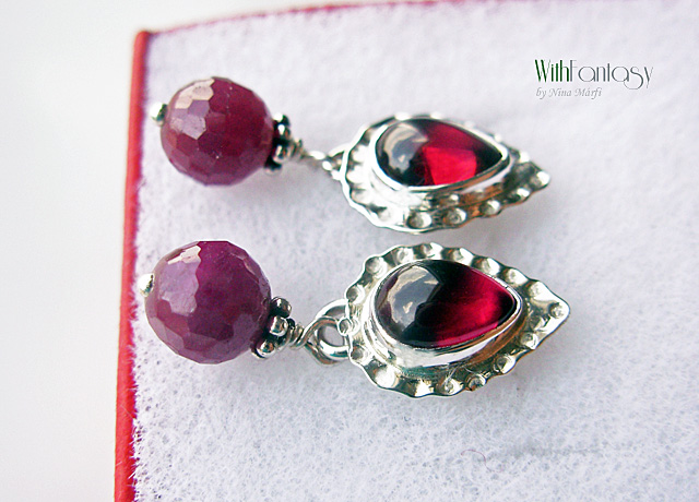 Kis, bedugós,ezüst fülbevaló gránáttal és rubinnal.