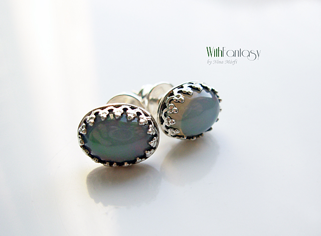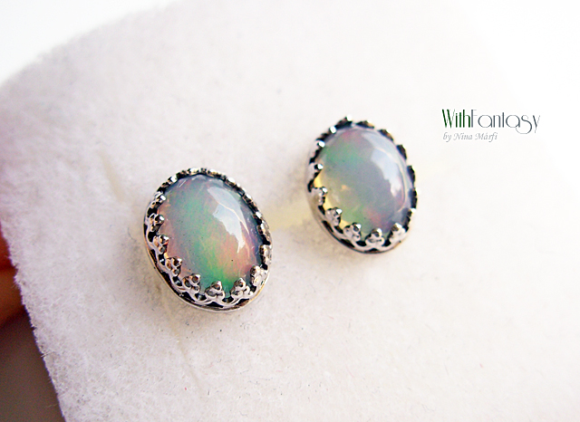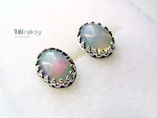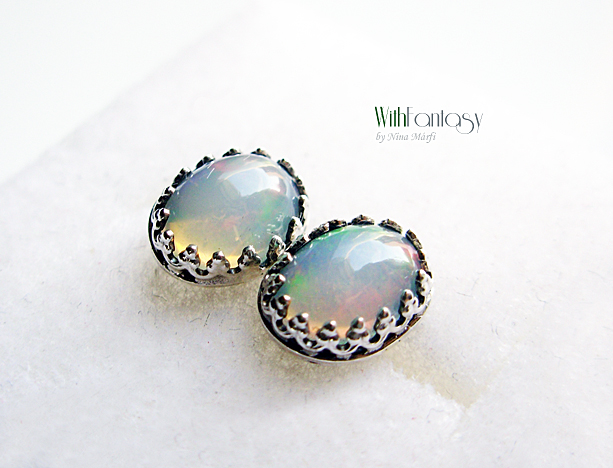 Finom, romantikus, bedugós, ezüst fülbevaló, kis etiópiai opállal (8x6mm)