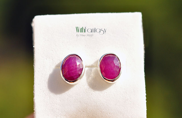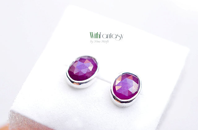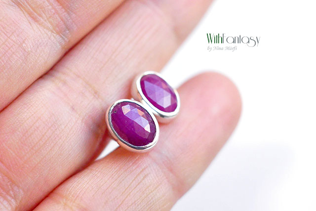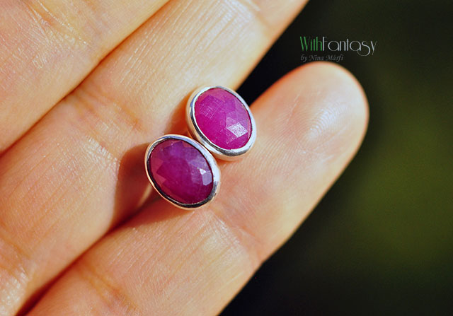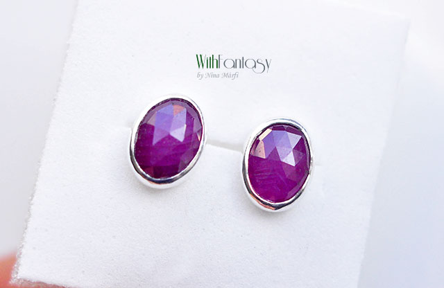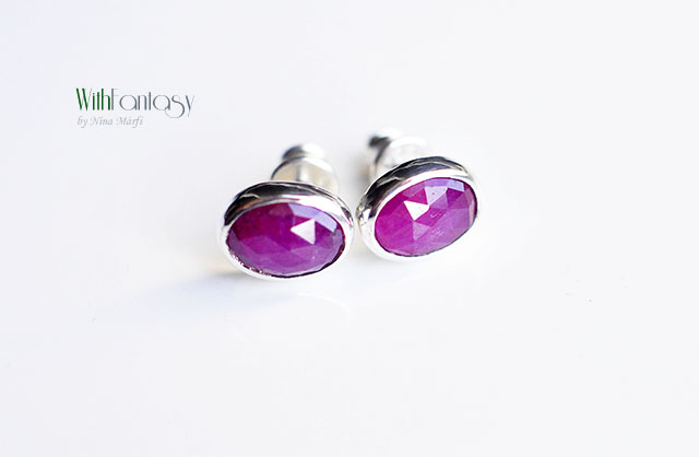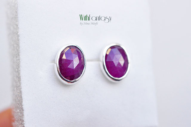 Egyszerű, bedugós, ezüst fülbevaló gyönyörű, intenzív málna színű rubinokkal. A kövek nagyon jó minőségűek, tiszták, erősen ragyognak. Az ezüst fehér, polírozott. A fülbevaló kézzel készült, hagyományos ezüstműves technikával. Nem használtam ragasztót a kő befoglaláshoz.