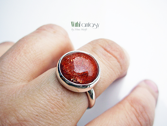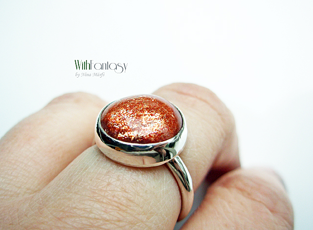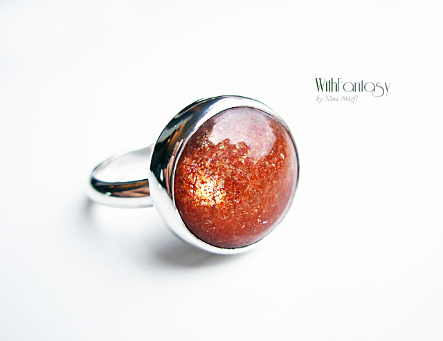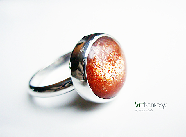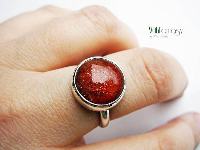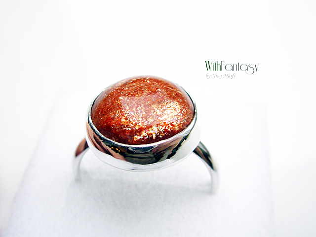 Klasszikus, univerzális, ezüst gyűrű különleges napkövel . A kő nagyon jó minőségű és egyedi. Tökéletes nyárra és a téli időszakra is. Az ezüst fehér és polírozott.