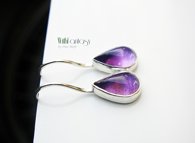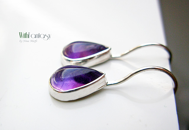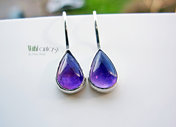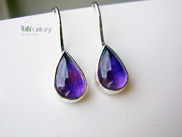 Finom, kis, ezüst fülbevaló ametiszt kabosonokkal.