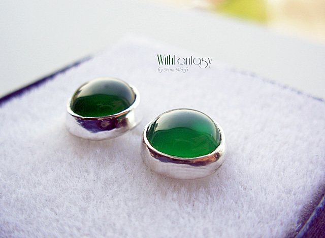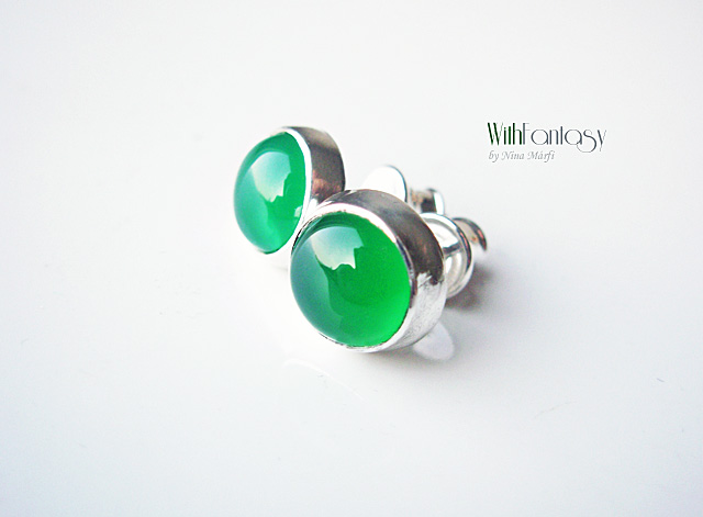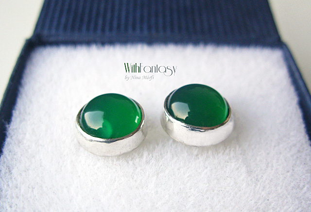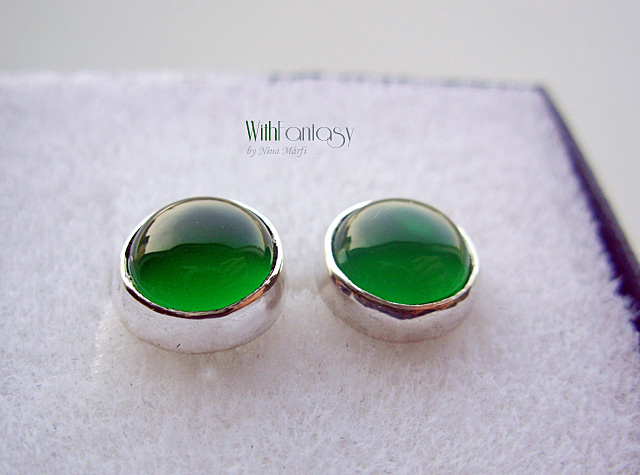 Kis, bedugós, ezüst fülbevaló gyönyörű, tiszta zöld acháttal.