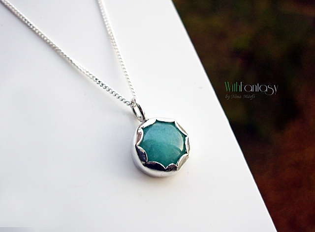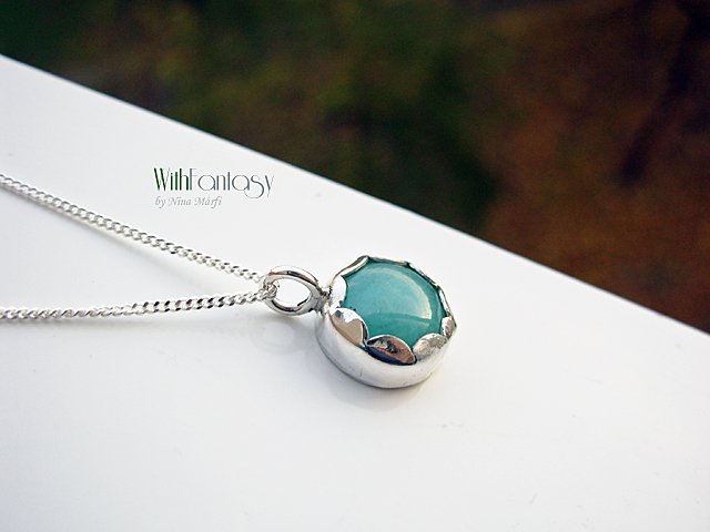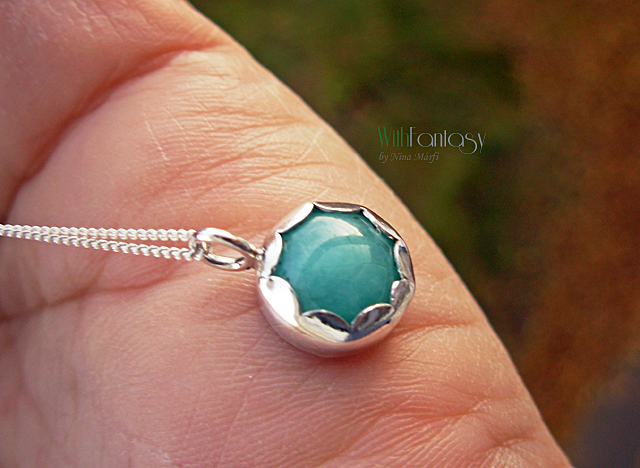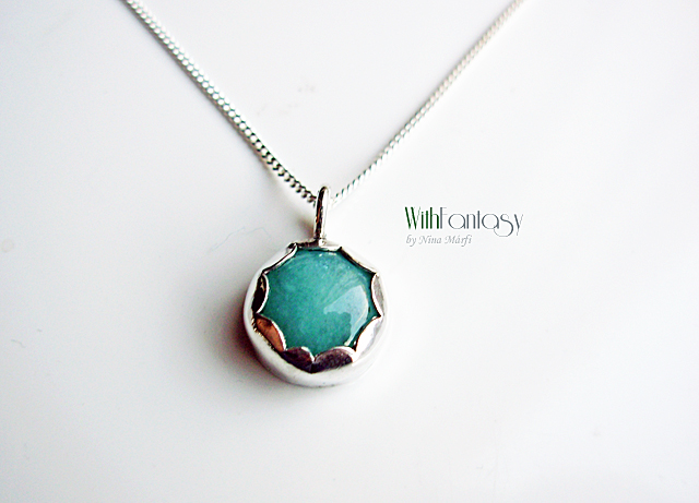 Finom, ezüst nyaklánc gyönyörű, kis amazonittal ( a kő nagyon jó minőségű). Az ezüst fehér és polírozott.