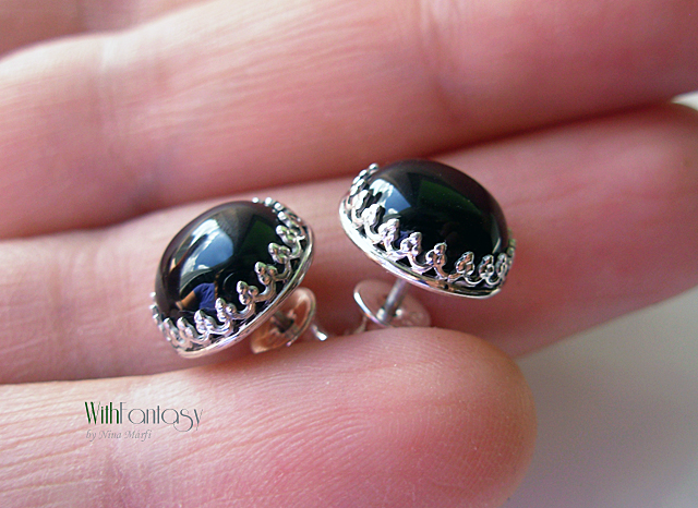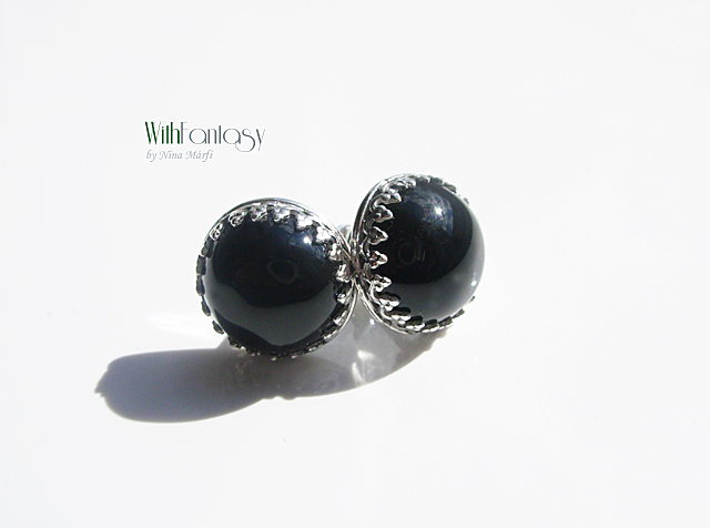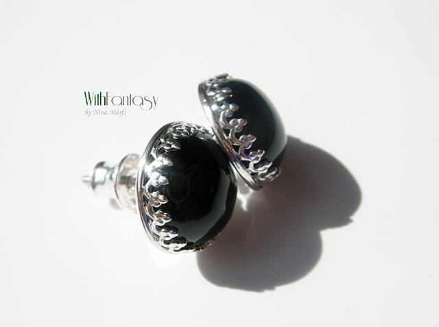 Klasszikus, univerzális, bedugós, ezüst fülbevaló fekete ónix-szal. A kövek nagyon jó minőségűek. Az ezüst fehér és polírozott.