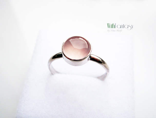 Finom, diszkrét, ezüst gyűrű, pasztell, világos rózsakvarccal. Az ezüst fehér (kérésre oxidálom), a kő, friss, tiszta, nagyon szép.