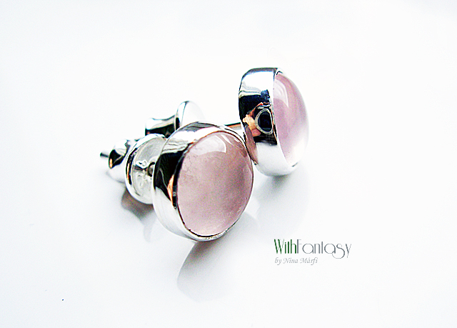 Kis, bedugós, ezüst fülbevaló gyönyörű, pasztell, világos rózsakvarccal ( a kővek nagyon jó minőségűek)