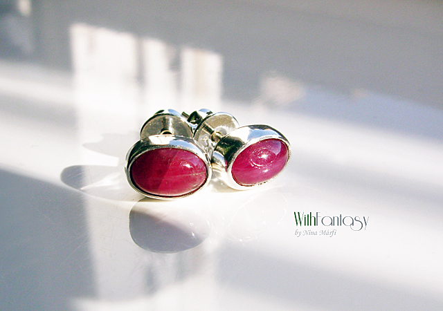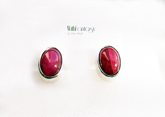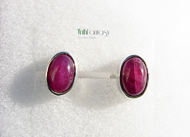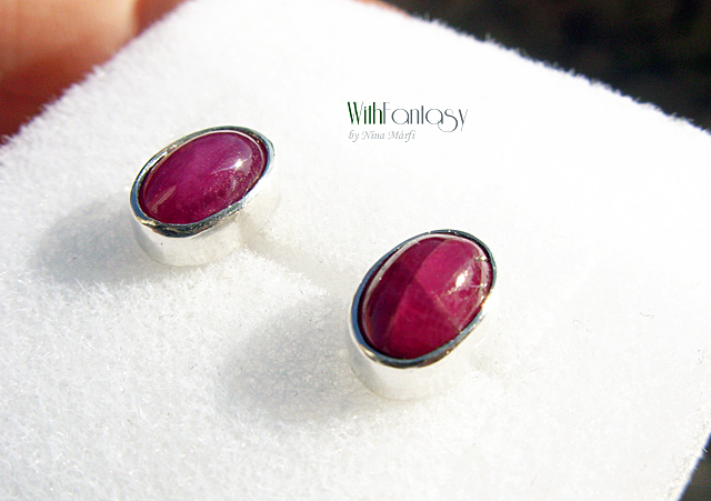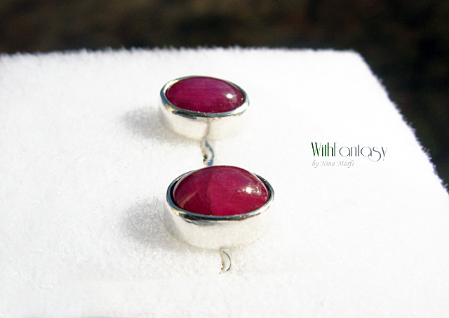 Kis, bedugós, ezüst fülbevaló gyönyörű rubinnal ( a kővek nagyon jó minőségűek, intenzív málna színű )