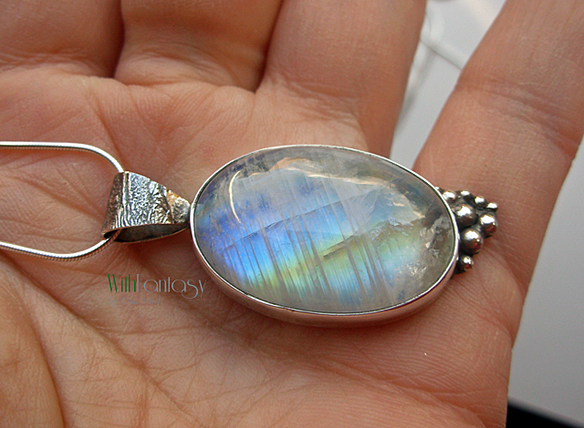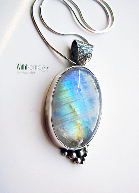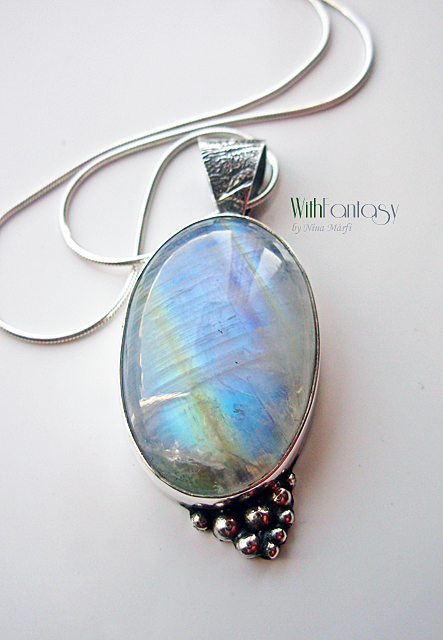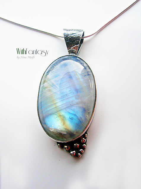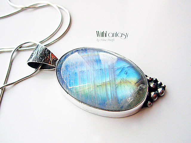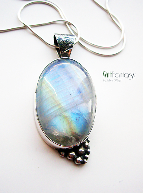 Egyedi ezüst medál gyönyörű, érdekes, nagy holdkővell . A medál kézzel készült, részben oxidált, polírozott.