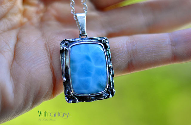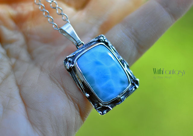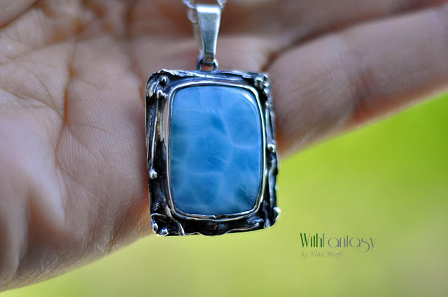 Egyedi, érdekes,ezüst medál különleges, gyönyörű, larimár kabosonnal, a kő első osztályú.