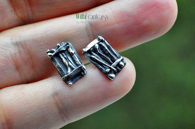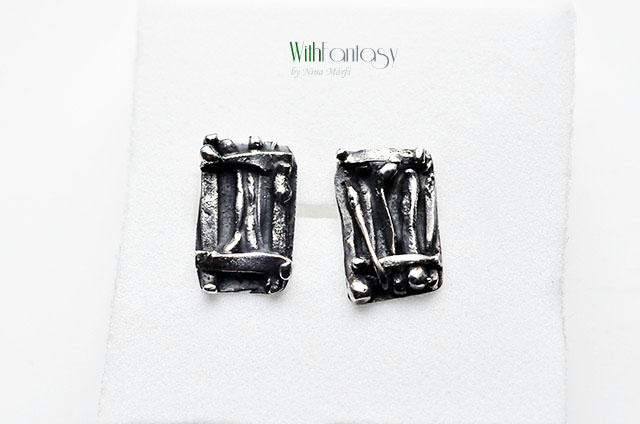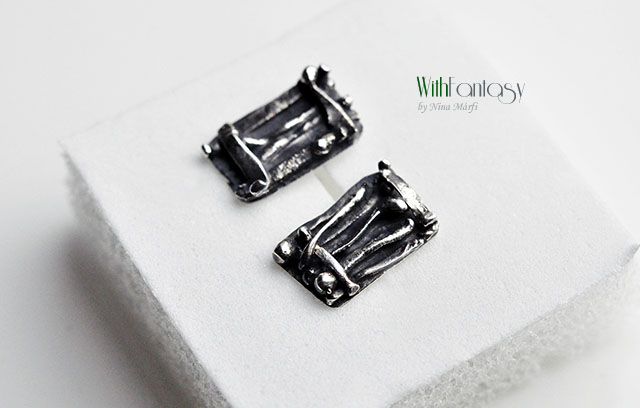 Klasszikus, diszkrét, ezüst fülbevaló fehér gyöngyökkel. A fülbevaló egyszerű, elegáns formajű, teljesen kézzel készült. Az ezüst oxidált és polírozott.