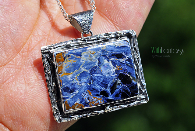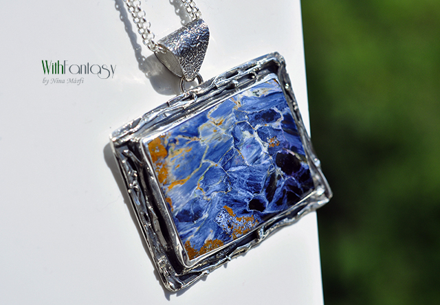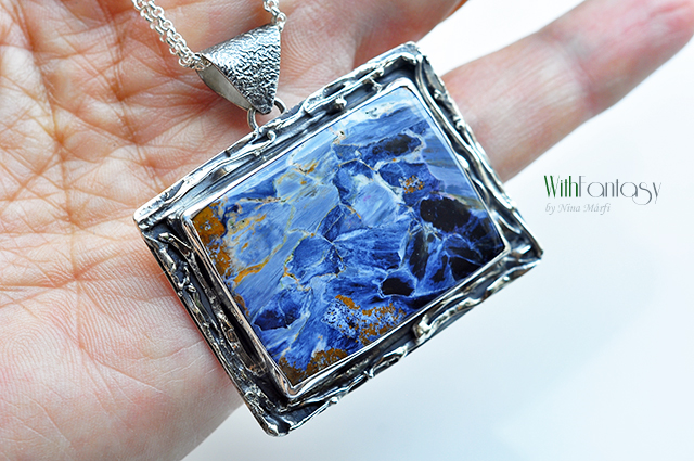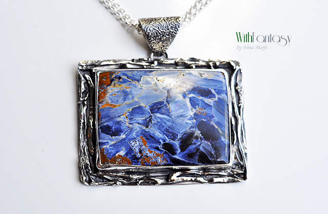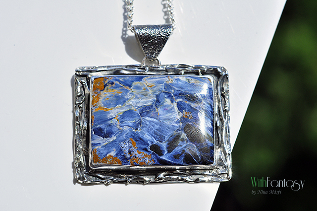 Egyedi, nagyon érdekes, teljesen kézzel készült, ezüst medál gyönyörű, különleges és ritka pietersit kővel. Az ezüst tekszturált, oxidált és polírozott.