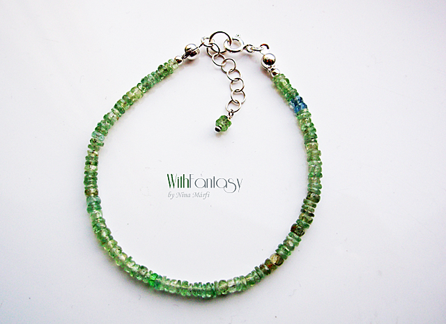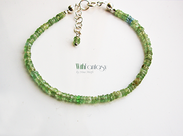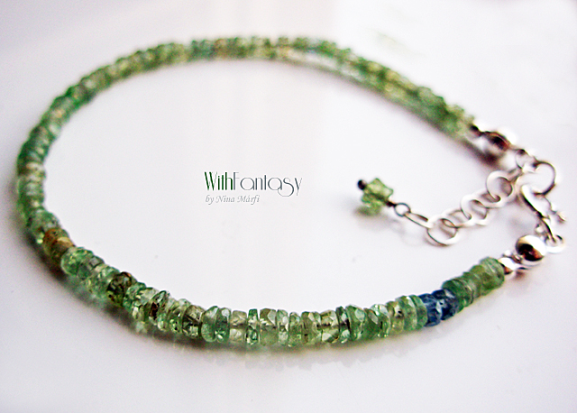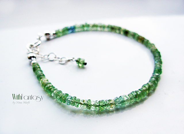 Finom, univerzális karkötő érdekes, ritka, zöld kianittal. Az ezüst fehér, polírozott.