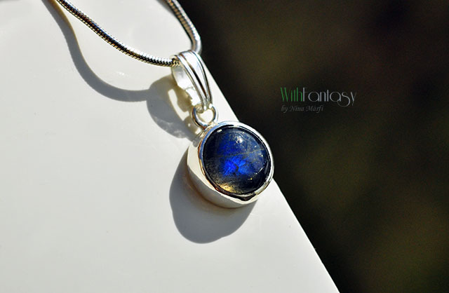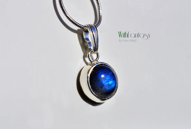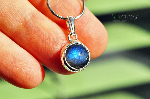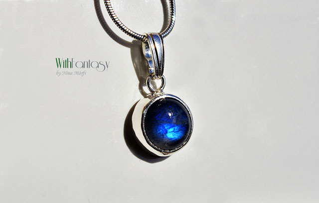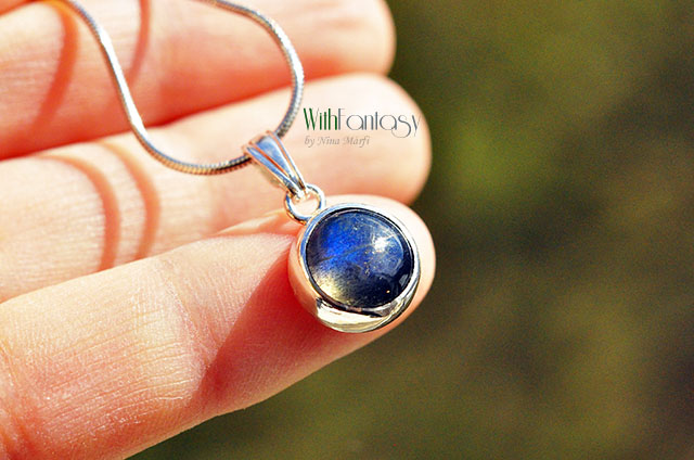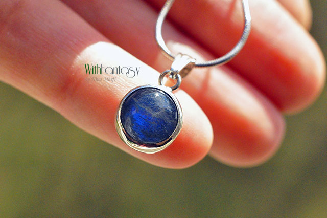 Dyskretny, minimalistyczny wisiorek z pięknym labradorytem, o ciemno niebieskim świetle. Kamień oprawiony w srebro 925, polerowane.