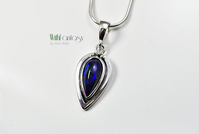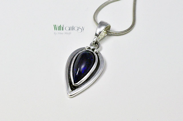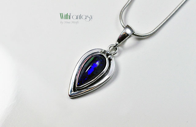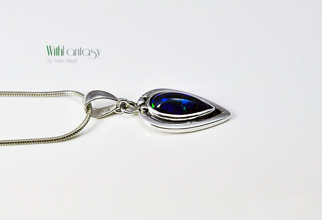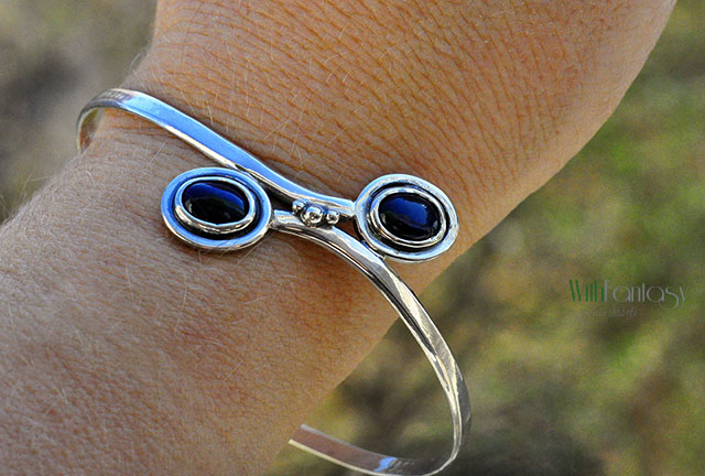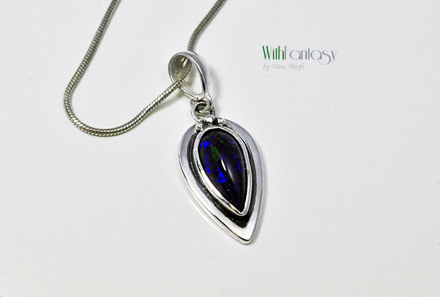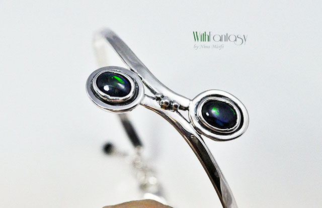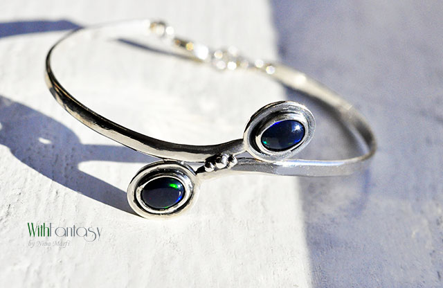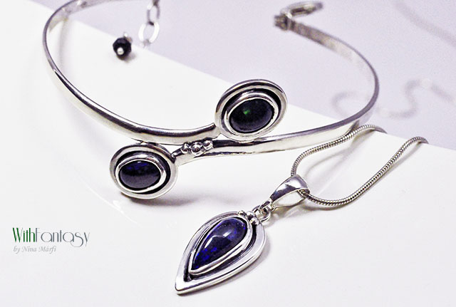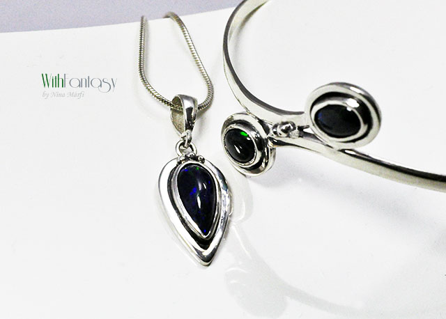 Komplet biżuterii- bransoleta i naszyjnik wykonane ze srebra i wyjątkowego czarnego opalu. Biżuteria na zamówienie klienta. Srebro polerowane.