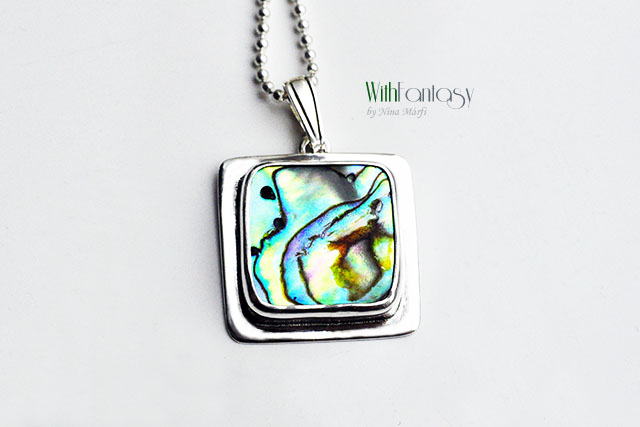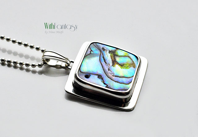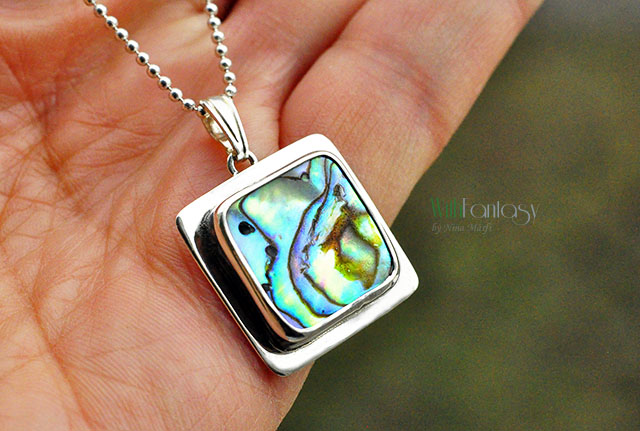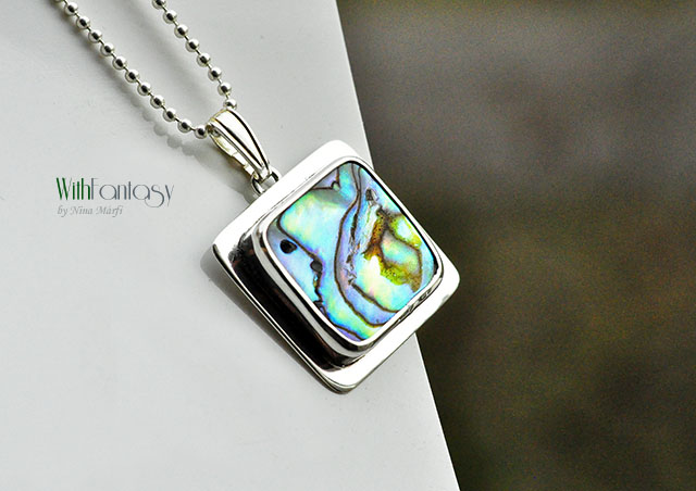 Srebrna zawieszka z naturalną muszlą Paua, srebro 925, polerowane.