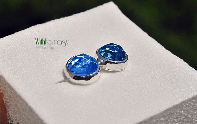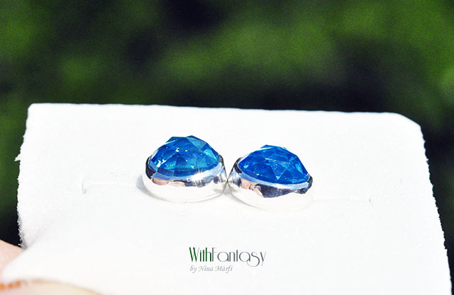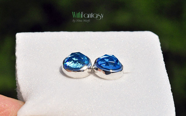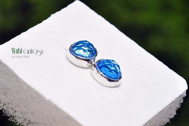 drobne, eleganckie sztyfty wykonane z błękitnych topazów „swiss blue” oprawionych w srebro próby 925
